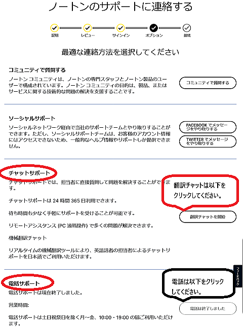 ノートンサポートまでのリモート(エスコート)や、電話予約も可能です。
